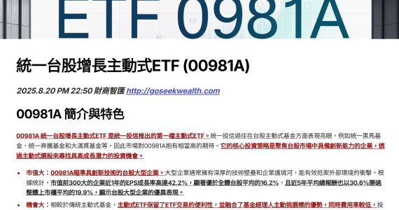 00981A 簡介與特色