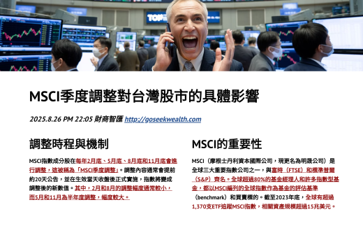 ToggleMSCI季度調整對台灣股市的具體影響