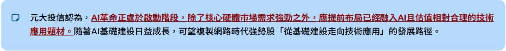• 元大投信提醒,AI新經濟相關企業可能正處於成長初期,存在產業變化快速或業務高度集中的風險。